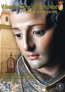 En la organización de esta romería han colaborado la Hermandad de San Benito Abad y la Junta de Festejos. Los actos comenzarán el sábado por la mañana con la celebración, a las 11:00 horas, de la “misa de romeros”. Posteriormente, sobre las 12:00 aproximadamente, dará comienzo la marcha y acompañamiento del guión de la Hermandad de San Benito, en la que participará la banda de cornetas y tambores “Coronación” y que transcurrirá por las calles Montecasino, Perdiz, Alta, Carmen y Camino del Chorrillo para finalizar en el Parque Recreativo Monte Calvario, donde se iniciarán los festejos propios de la romería. La Hermandad de San Benito Abad habilitará un servicio de barra y habrá música en directo.